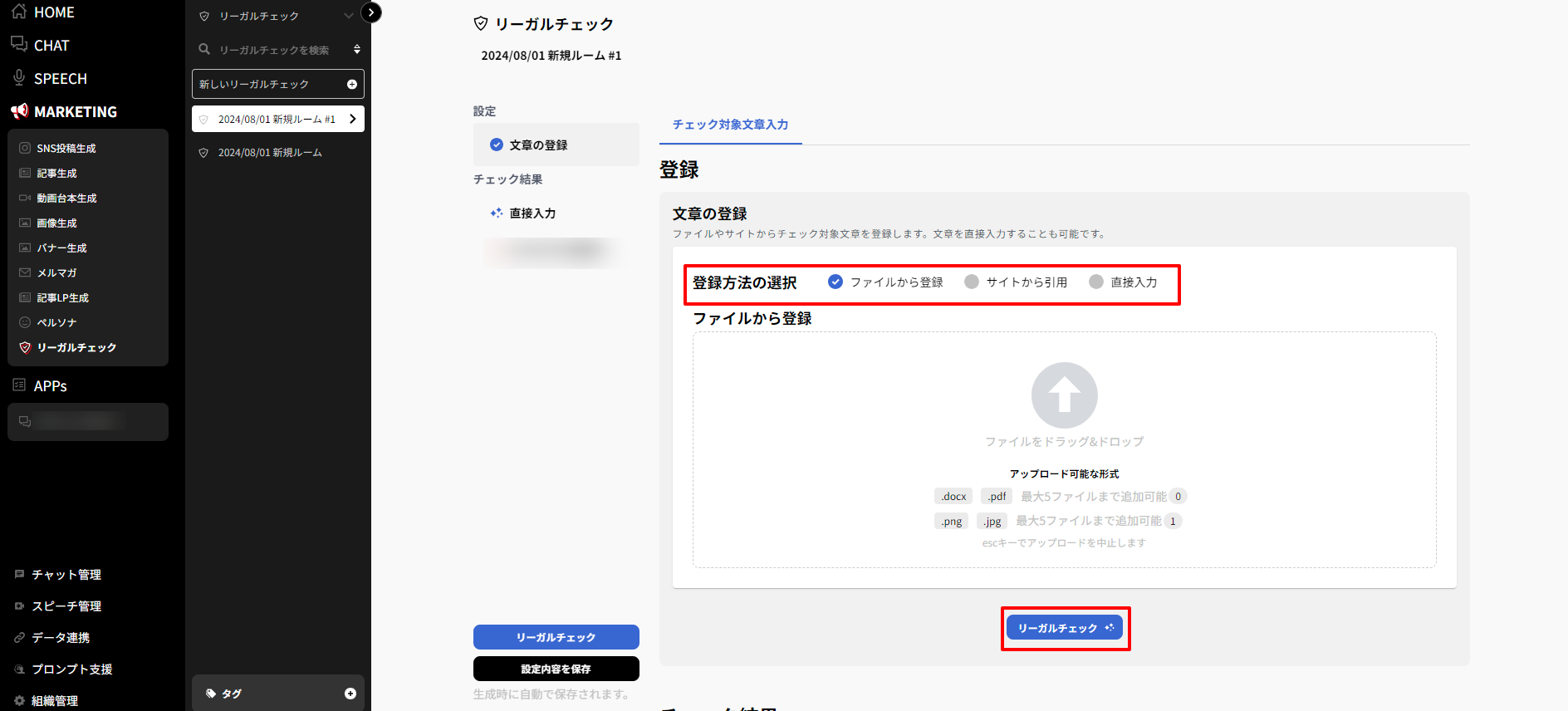 アップロードしたファイル内の文章をチェックします。