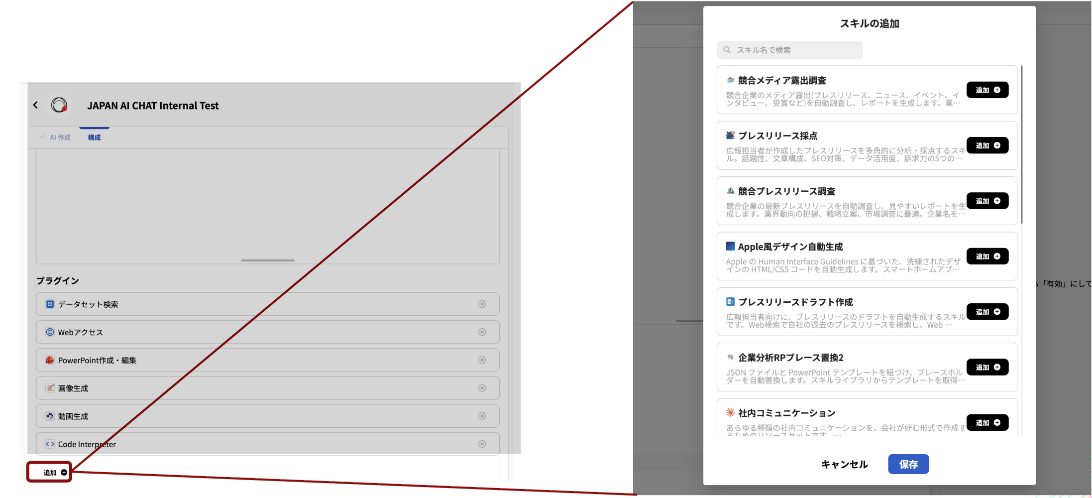 自分の組織で作成したスキルも検索対象に含まれるので、社内で共有されているスキルも会話の中から簡単に呼び出せます。
