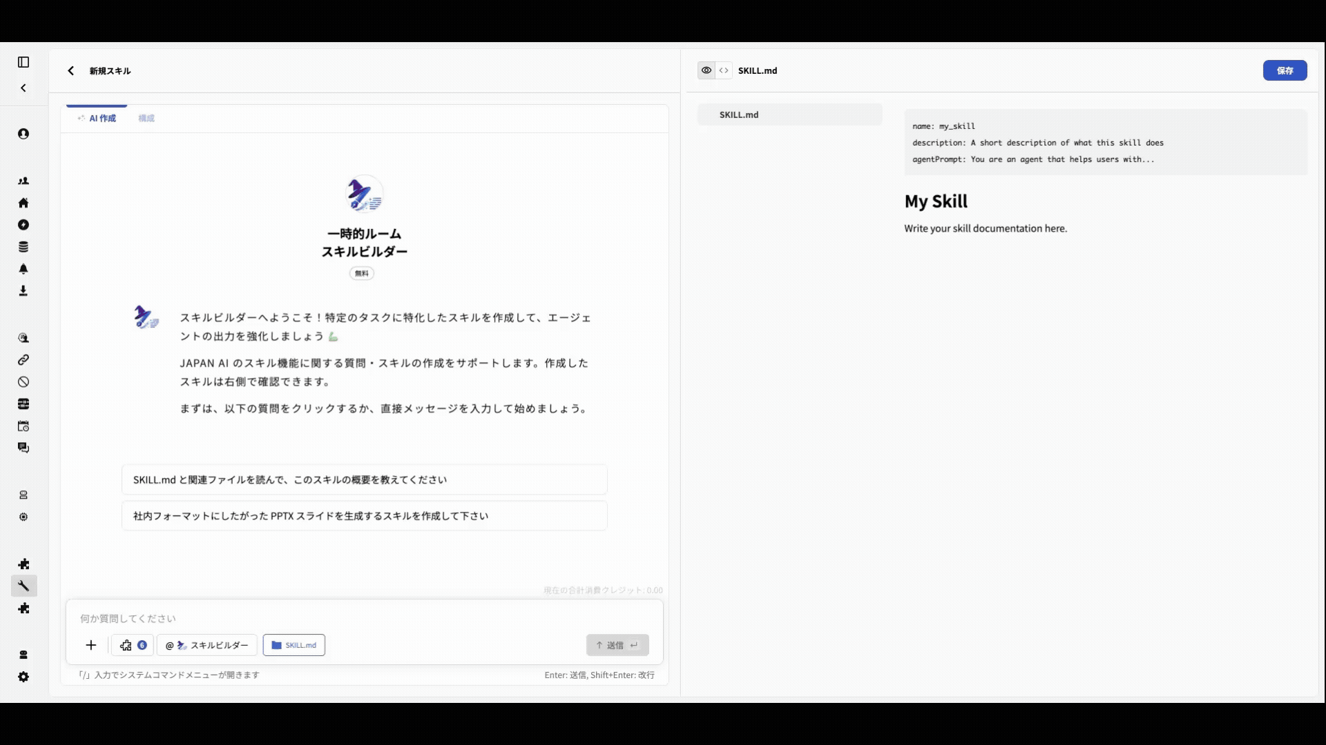 3. 左側のチャット欄で、作成したいスキルの内容をAIに伝える
